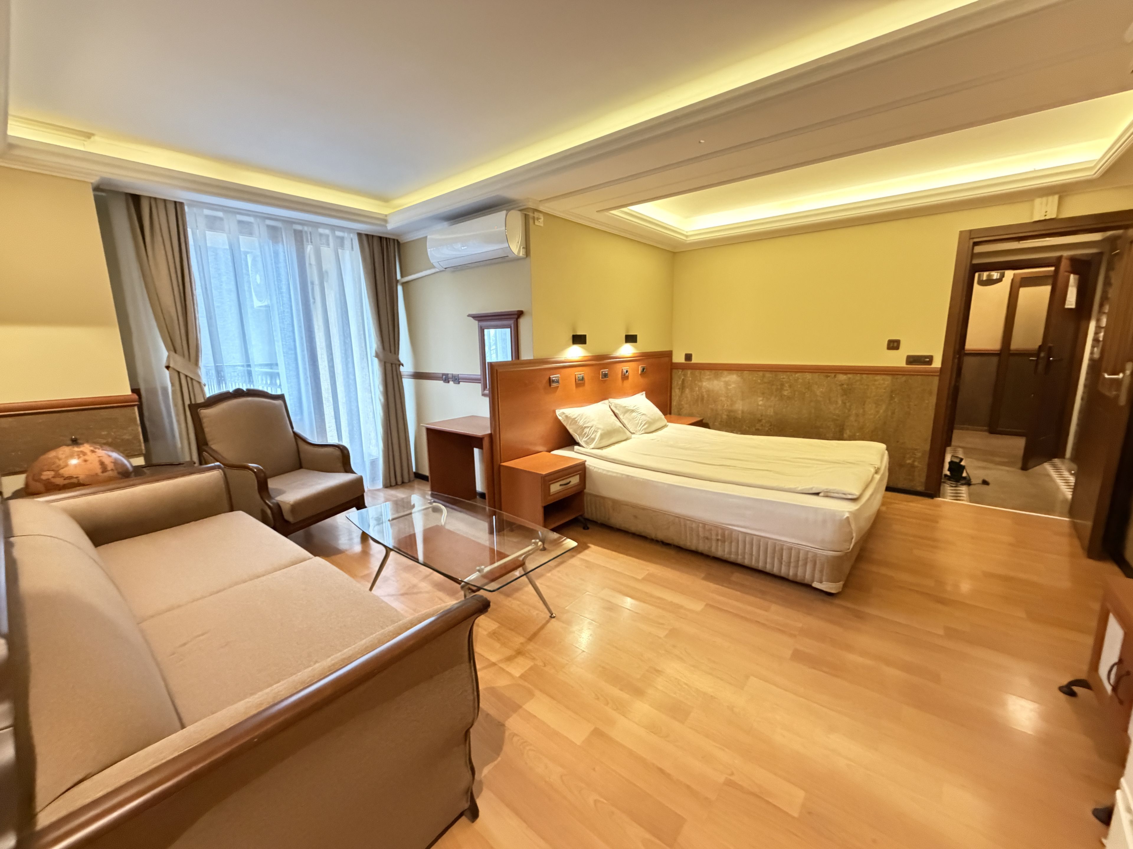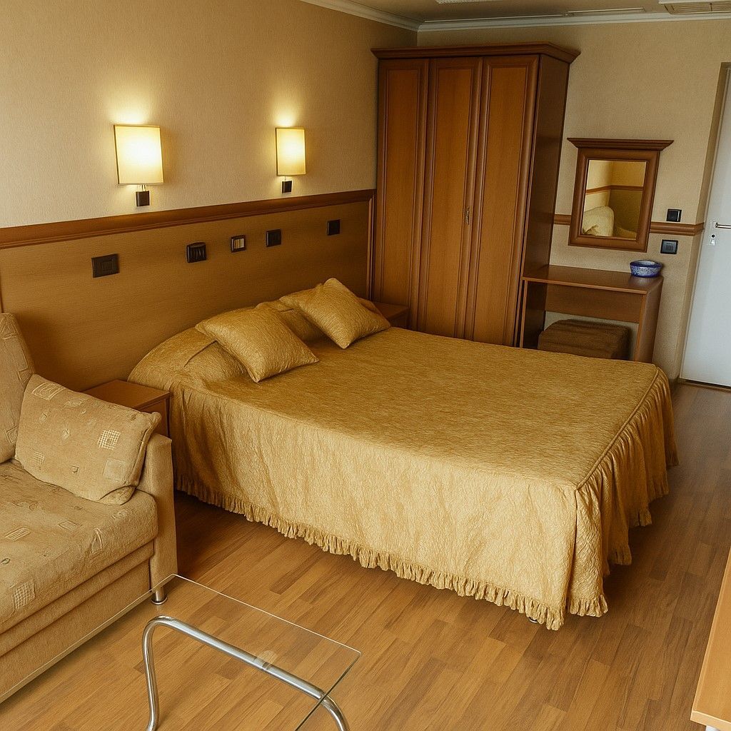 Супериорната стая предлага значително повече пространство и комфорт, което я прави отличен избор за по-дълъг престой. Просторната зона и балконът осигуряват усещане за удобство и спокойствие, подходящо за гости, които прекарват повече време в стаята.